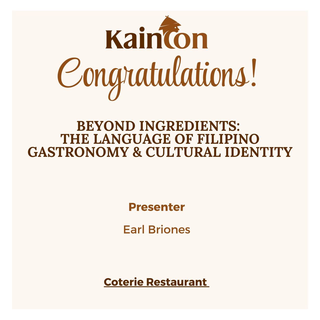 As part of this ongoing exploration, I’m also thrilled to share that my thesis project and presentation on pre-colonial Filipino foodways is being reviewed at KainCon this year. KainCon is a premier culinary conference that brings together chefs, researchers, and cultural advocates to explore the intersections of Filipino food, history, and identity. My presentation, titled Beyond Ingredients: The Language of Filipino Gastronomy & Cultural Identity, examines how food serves as a living archive of memory and resistance. Having this work recognized in such a meaningful space is an incredible honour, and a testament to the power of food as both scholarship and storytelling.